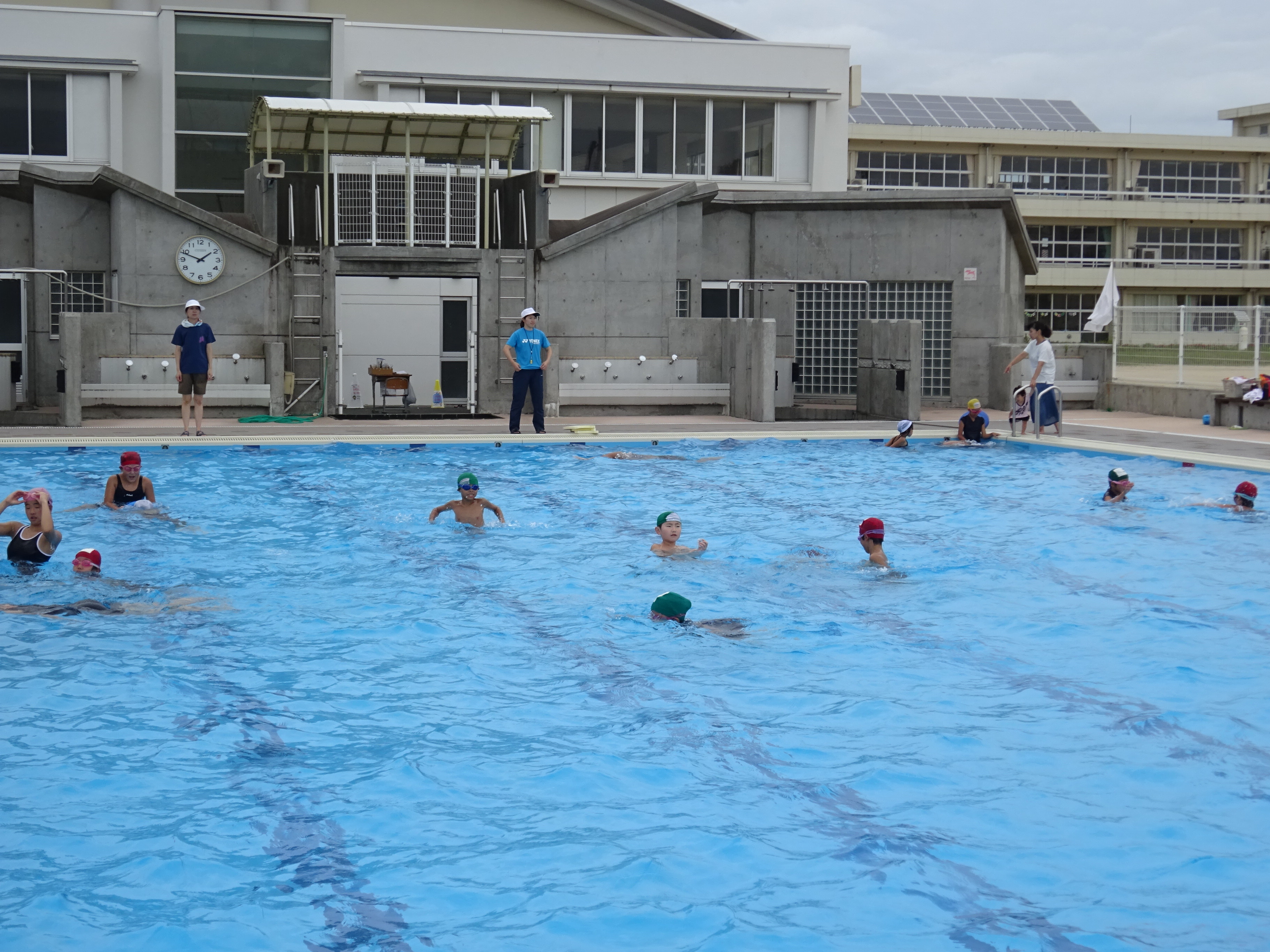 夏休み最後のプール開放には、子どもたちがたくさん集まって楽しんでいます。