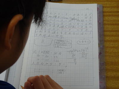 子どもたちは、式や図、表、数直線などを使って分かりやすくノートにまとめていました。