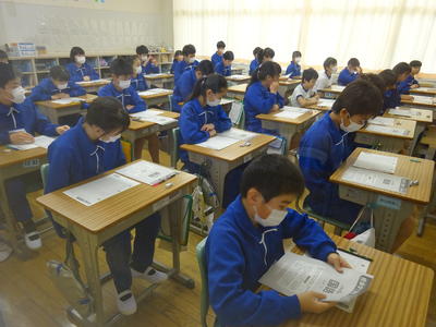 今日は学力テストの1日目、全学年で国語に取り組みました。