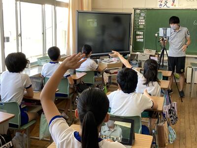 その後、児童は他の2つの教室に分かれ、担任は6年2組の教室から授業を行いました。