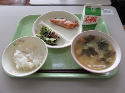 本日の給食 2015年6月30日 13時46分 給食 本日の献立は,ごはん,ヒジキサラダ,鮭の塩焼き,味噌汁,牛乳です。今日は,『今月のいちおし献立』の日です。体の免疫力を高め,体力を向上させるために食べてほしい献立です。