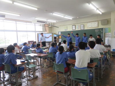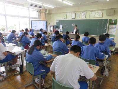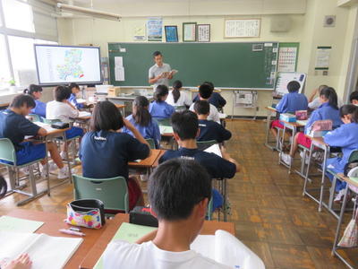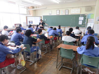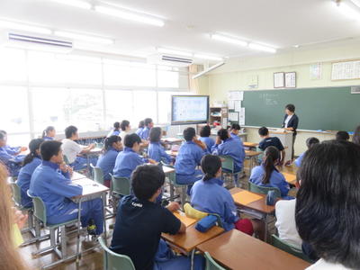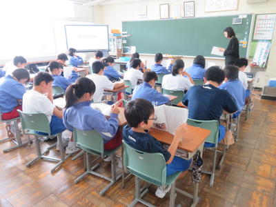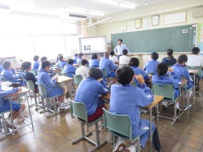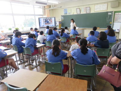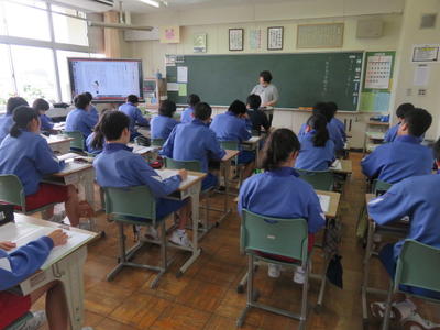 どの学級でも電子黒板を活用し、資料などを参考に進めていました。