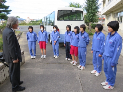 駅伝選手出発 2015年10月8日 07時13分 今日の出来事 おはようございます。肌寒い朝ですが,福島県中体連駅伝競走大会に出場する本校女子が,会場の西郷村へ向けて7:00に元気に出発しました。レースは明日です。頑張ってください。