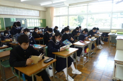 本日は土曜日ですが,授業日となっています。生徒たちは遅刻もなく登校し,朝の読書に入ろうとしています。いつものように2年生も落ち着いて1日がスタートしました。