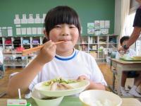 今日は南相馬市産食材活用デーの「のまたん献立の日」です。南相馬市産のブロッコリーがサラダで使われています。南相馬市の農政課の方が作ってくださったブロッコリーの紹介のショートムービーでは、ブロッコリーの紹介や生産者の方のメッセージが流れました。ブロッコリーの詳しい紹介に驚く子や、頷きながら聞いている子もいました。野菜が苦手な子もいつもより箸が進んでいたようです。「おいしい」という声が多く聞かれました。