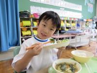 2年生が栄養士の先生と一緒に"食に関する学習”をしました。食べ物にはいろいろなはたらきがあり、元気に毎日生活するためには、なんでも食べて元気な体をつくらないといけないことがわかりました。苦手なものであっても健康のために挑戦しようと、早速今日の給食から頑張る様子がありました。