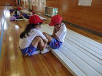 上級生は下級生に優しく声かけをしながら、下級生は上級生に負けないように軽く汗をかくくらい運動をしていました。これからもさまざまなプログラムで運動を楽しむ予定です。