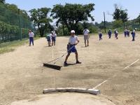 高学年の5年生・6年生は、最後に、今回使用するためにラインカーで引いた白線をみんなで協力しながら元通りにしていました。
