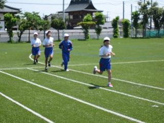 先週の10日(木)の業間時に、校庭にて、全校生が縦割り班ごとに分かれて、今年度1回目の「はりきりタイム」を実施しました。体力向上を目指して、掃除の縦割り班ごとに短距離や長距離、ミニハードル、カラーコーンのそれぞれの場に分かれて、プログラムに取り組みました。