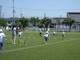 ミニハードルを片足や両足で飛び越えていきます