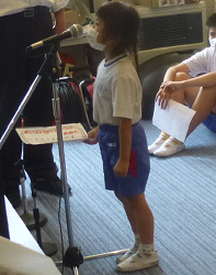 お昼の放送では、各学年から代表児童が放送室に集まって、それぞれのめあてを発表しました。