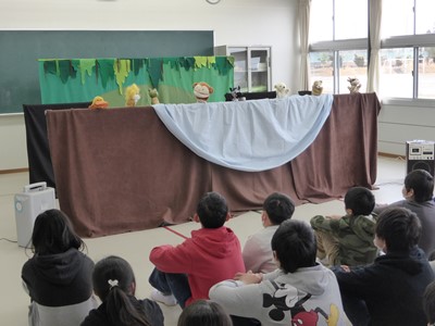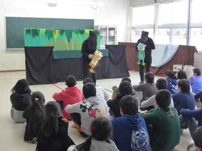 ○3月9日(水)の4校時、5校時目に、「おはなしのへや」を行いました。小高小学校に勤務されていた先生や保護者の皆様のご協力のもと、子どもたちに定期的にお話を聞かせていただいております。今年度も、今日で最後となりました。今回は劇団「あかいとまと」の方もお招きし、楽器の演奏や出し物を交えながら、楽しくお話をしていただきました。企画・運営していただいた皆様方には、大変お世話になりました。毎回楽しく、笑顔になれる時間を過ごすことができました。