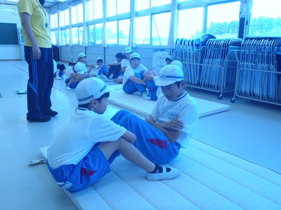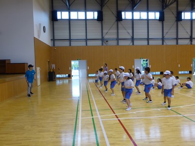 ○6月23日(火)の5、6校時に、復興支援活動として、エイベックスのダンスレッスンを行いました。「りょうたろう」さんを迎え、3、4年生の児童を対象に、EXILE「Choo Choo Train」のダンスを練習しました。子どもたちは、ダンスを覚えようと、必死で練習に取り組む姿が見られました。