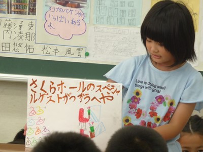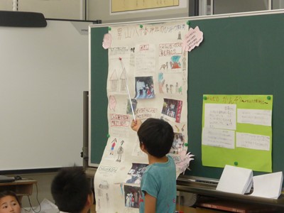 それぞれのグループで役割分担をし、クイズを交えながら、上手に発表することができました。人前で堂々と発表する姿がすばらしいです。