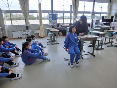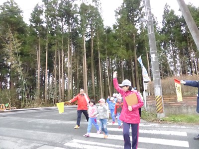 4月8日(水)に春の交通教室を実施しました。交通指導員の方々においでいただき、交通ルールの大切さを教えていただきました。委嘱状授与の後、全校児童で実地訓練を行いました。横断歩道の渡り方の様子です。
