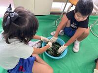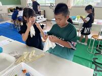 どんな模様のハンカチになるかな~わくわくしながら活動している3年生