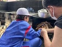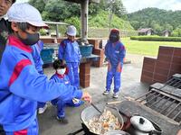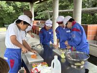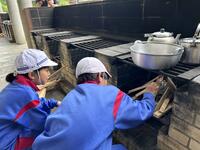 2024年7月11日 16時30分今日の夕飯は野外炊飯です。班で分担、協力して、かまどを作り、ご飯を炊き、カレーを作ります。