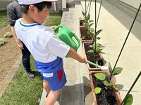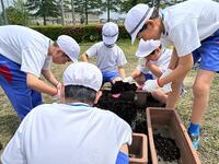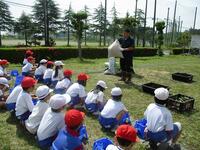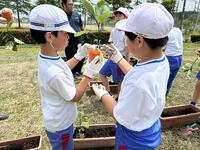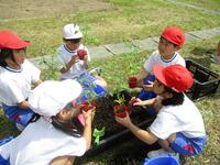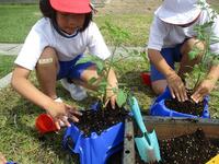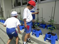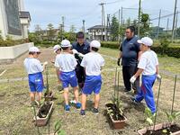 ミニトマトの苗植えのしかたを教わりました