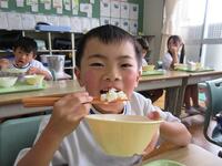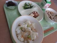 今日から「歯と口の健康週間」です。そして今日は「むし歯予防&かみかみ献立」です。噛み応えたっぷりの「カミカミサラダ」や、歯の土台となる栄養たっぷりの「手作りふりかけ」など、歯をより丈夫に健康に保つメニューです。子ども達は、「このふりかけおいしいね」としっかりとよく噛んで食べていました。