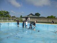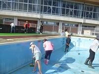 総勢80人でプール清掃を行いました