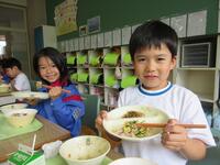 そしてBGMは「相馬流れ山」ますます雰囲気が出ていました。出陣する小高っ子もいるようです。家族が出陣する子どもからは、「この給食で、野馬追の日がどんどん近づいていることを実感して、わくわくする!」という声もありました。27日には、地元小高での開催です。給食を通して地域の伝統を感じることができました。