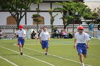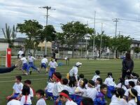 本番と同じ流れで、全校リレー!子どもたちは全力です