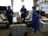 本日のお昼の時間に、東京都から杉並ロータリクラブの方々10名が来校し、児童のために本を45冊寄贈していただいました。代表で児童が受け取り、その後感謝の言葉を述べました。