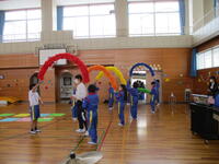 5年生は、宝探しを行いました。5・6年生でペアを組み、体育館に散りばめられた宝を一緒に探していました。