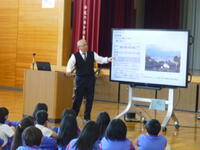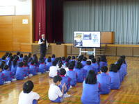 校長先生から、パワーポイントを用いて平成23年3月11日にどのくらいの規模の大震災が起きたのか分かりやすくお話しをいただきました。この東日本大震災が起きたとき、どの児童もよく覚えていないか、まだ生まれていなかったときでもあります。13年経過してもこの大震災で得た教訓はつないでいかなくてはならないと校長先生はお話ししていました。