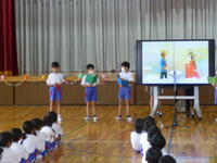 1年生は、早く宿題を終わらせて家のお手伝いをしますと発表していました.3年生は、2学期も自主学習を頑張りたいと発表していました。5年生は、委員会の活動をもっと責任をもって活動したいと発表していました。よい2学期にしたいですね。