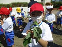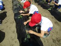 JAさんのご指導・ご協力のもと、サツマイモの苗を植えました。収穫が楽しみですね。