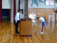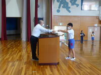 今日の小高タイムでは、市小学生陸上大会にてボール投げ1位の6年生に表彰を行いました。