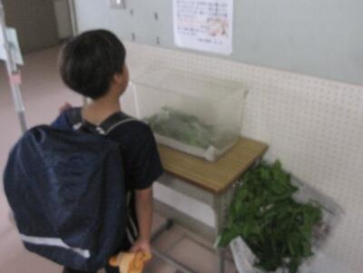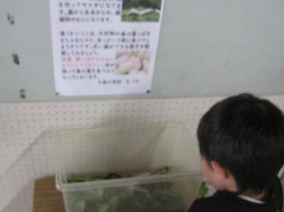 やがて繭を作る蚕蛾の幼虫を見守ってほしいと思います。
