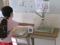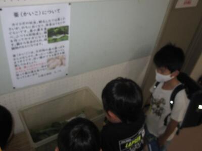 今年も、保護者の方から提供していただいた「かいこさま」を昇降口に展示しました。