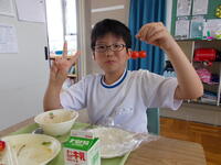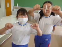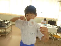 3・4年生は、ぶんぶんゴマの制作を行いました。ぶんぶんゴマは、回転する部分に色を染めて、回転したときにきれいな模様になるよう工夫していました。制作はとても面白く、集中して取り組んでいました。できたコマはお互いに見せ合い、上手に回転させていました。