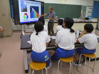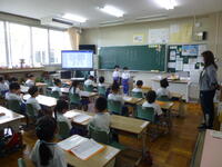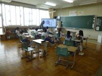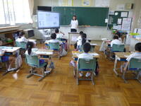 2年生では、国語の漢字の学習をしています。書き順やどの時に使われている漢字かをみんなで発表しあい、一生懸命に練習していました。