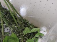 先週、昇降口のロビーに登場した蚕様ですが、今週に入って次々と繭を作り始めました。