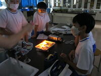 5・6年生は、虹色の炎をつくる炎色反応実験を行いました。リチウムやカリウム、バリウム、カルシウム、ナトリウム、銅を燃やす実験を行いました。様々な色が出てきたことに児童は、大変驚きと感動をしていました。