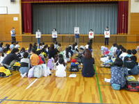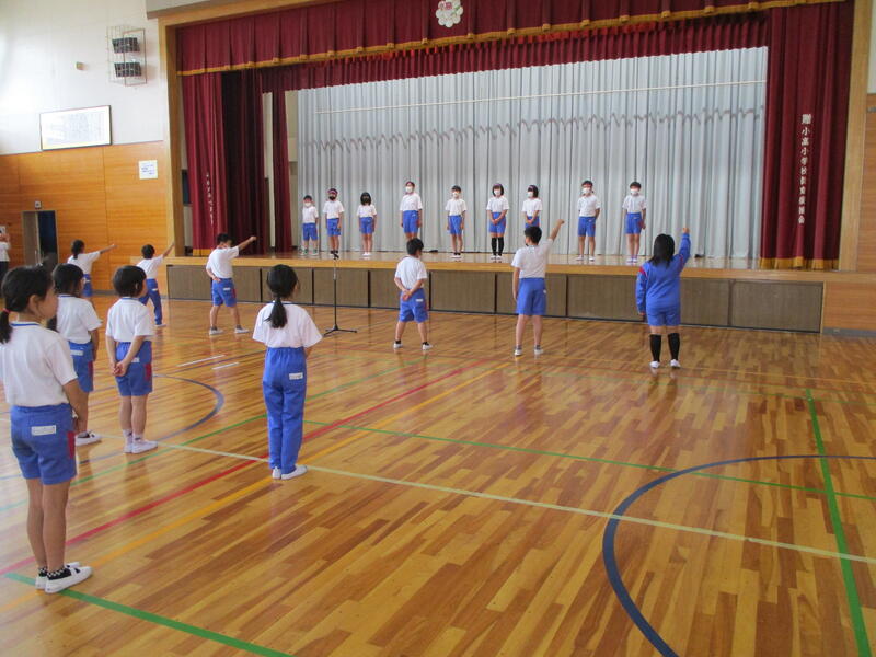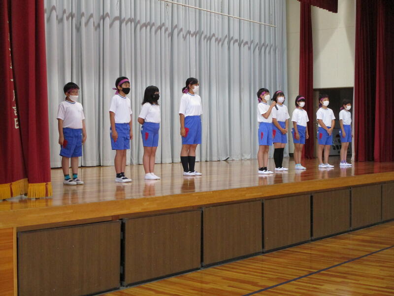 校長先生のお話の後、出場する6年生が一人一人、大会への意気込みを発表しました。次に、5年生たちが応援団として1~4年生の前に立ち、6年生一人一人に大きな声でエールを送りました。1~4年生も5年生に合わせて元気に拍手を送りました。