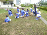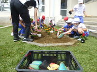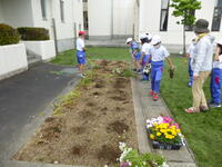 1年生は、あさがおのたねをまいていました。きれいに咲くといいですね。たのしみです。