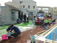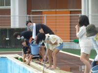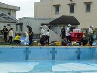 保護者の中には、自宅から持参した高圧洗浄機を使って、プールの側溝を洗い流す方もいました。ありがとうございました。
