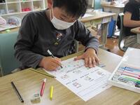 小高小学校では、1年間に2回、栄養士の先生と食事や栄養について学習する時間があります。今日は1年生の食に関する学習です。紙のおぼんにイラストを配膳・・・正しい位置や箸の向きなど考えながら配膳していました。楽しく食べるためには、よい姿勢で食べることや正しく配膳することが大切だとわかりました。給食の時間には、さっそく意識して食べていました。