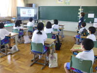 また4校時には、1ねんせいではじめて英語の授業を行いました。マット先生や中学校の長嶺先生もきてくれました。