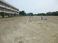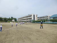 中学年の3・4年生は、ボール投げと50mを最初に行いましたが、もっと飛ばすためにどうしたらよいか、もっと速く走るためにはどうしたらよいか、考えて取り組む姿が見られました。