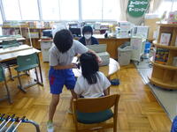 今日は、それぞれの検査ブースをグループで巡りました。1・6年生グループ、2・5年生グループ、3年生グループ、4年生グループ。それぞれ引率の先生はいません。自分達で考えて行動していました。