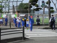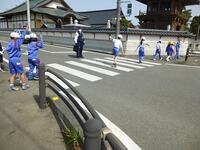その後、縦割り班8班それぞれが、校外に出て実際に信号や横断歩道の歩き方を練習しました。