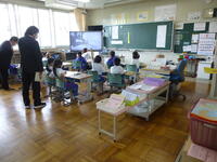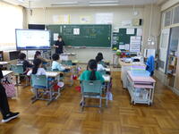 3年生では、社会の学習でした。小学校の東西南北に何があるのかみんなで発表していました。次は絵で表してみようという授業になるようです。自分の住んでいる町を地図に表すことで、もっと小高を知ることができますね。