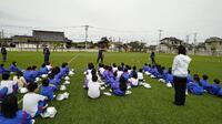 今日は、南相馬消防署小高分署の署員さん4名の方をお招きし、避難訓練を行いました。児童たちは、「お」さない、「か」けない、「し」ゃべらない、「も」どらないの4つを守り、避難訓練に臨んでいました。