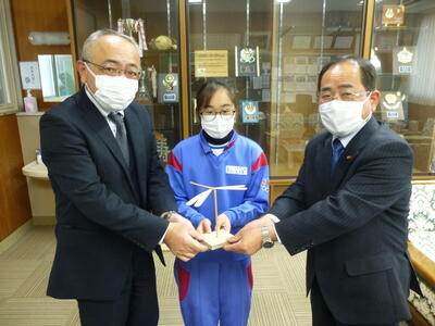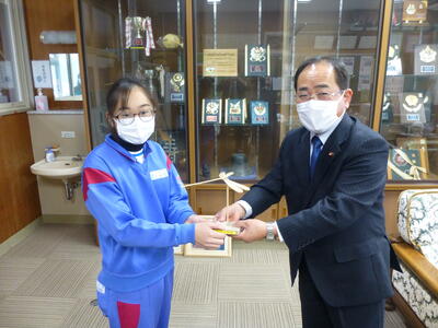 小高区にお住まいの小野田治様から、6年生に手作りのバランスとんぼをいただきました。市議会議員の竹野光雄様が本日学校に届けてくださいました。とんぼは勝ち虫と言われ、古来から縁起がいい虫とされています。小野田様は、卒業記念として毎年6年生のためにバランスとんぼを作ってくださっています。地域の方の温かいエールを胸に、6年生にはとんぼのようにまっすぐに前を向いて飛び立っていってほしいと思います。小野田様、竹野様、ありがとうございました。