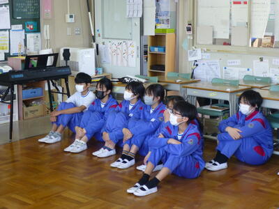 「君が代」「大空がむかえる朝」の、息継ぎの場所、クレッシェンド、デクレッシェンドをかけて歌う場所をみんなで確認してから歌いました。どの学年も、教室での練習の成果もあって上手に歌うことができました。「とっても上手になりました」と音楽の係の先生からもたくさんほめてもらい、ニコニコしながら練習を終えることができました。